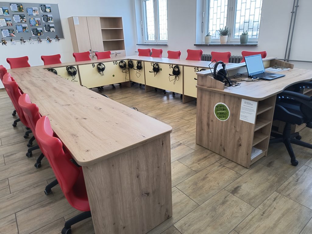 - wyposażenie do pracowni językowej jako pomoc dydaktyczna dla uczniów,