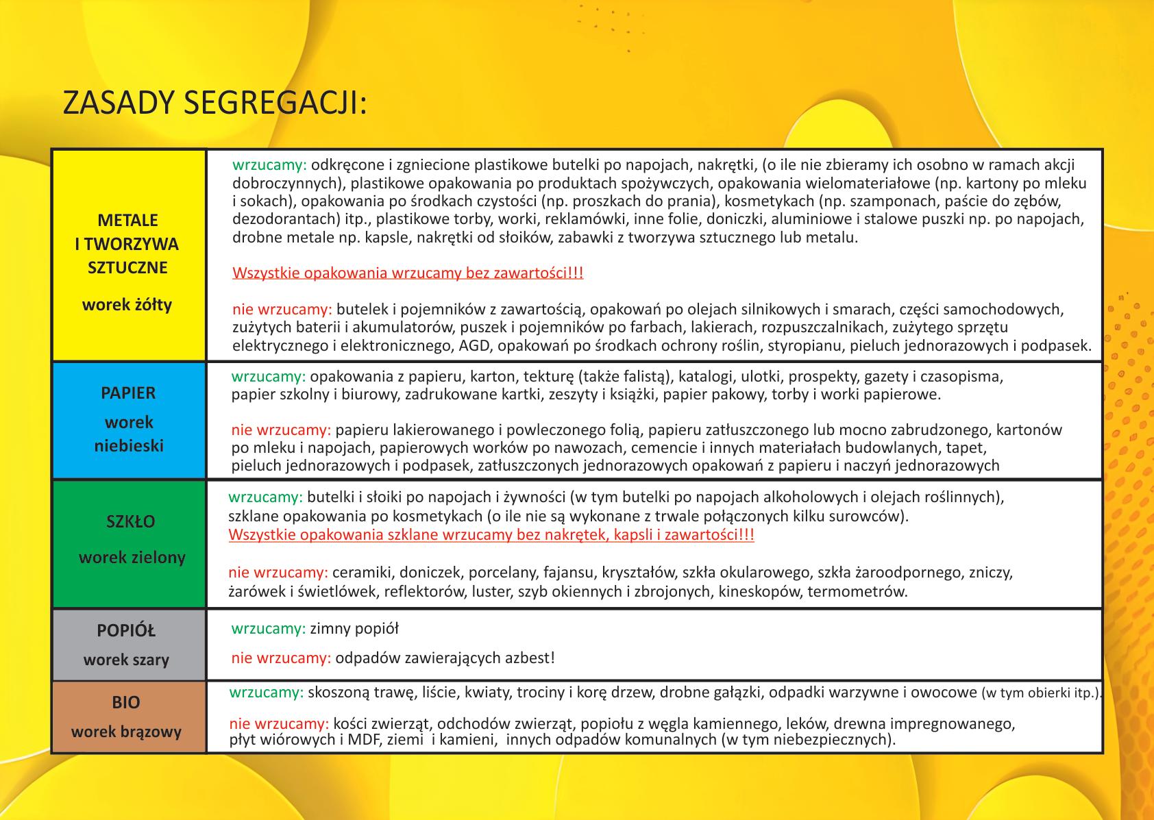 Worki przeznaczone do segregacji odpadów komunalnych są dostępne w Urzędzie Gminy Księżpol pok. Nr.4.