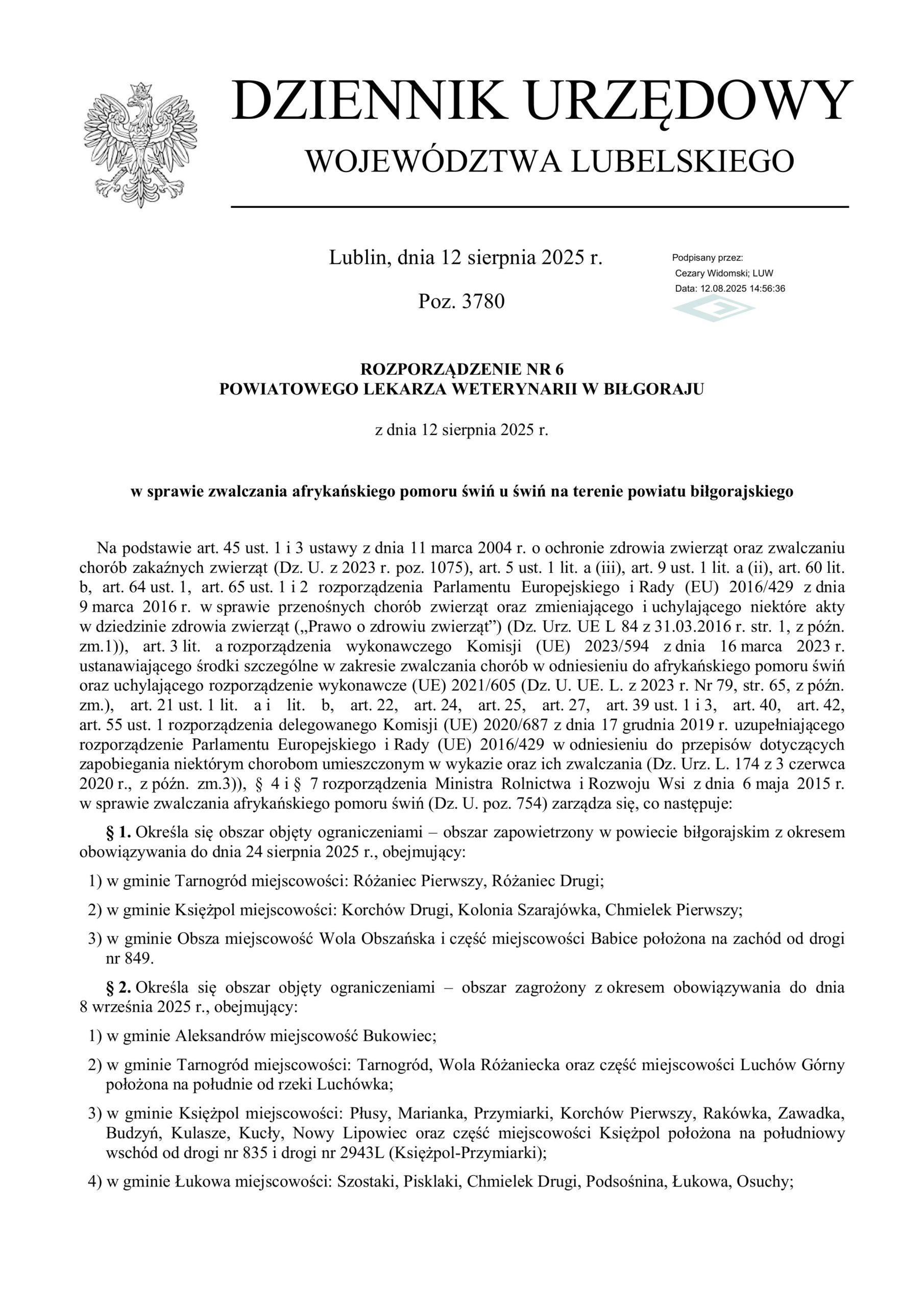 Rozporządzenie nr 6 Powiatowego Lekarza Weterynarii w Biłgoraju